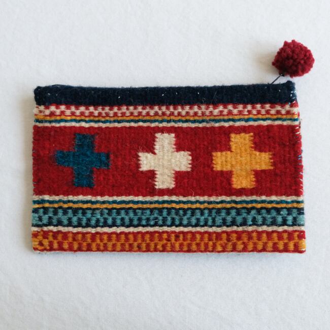 メキシコオアハカ州の羊毛タペテ(ラグ)をつくる村、Teotitlan Del Valleの小さな家族経営の工房でつくられた羊毛ポーチ。